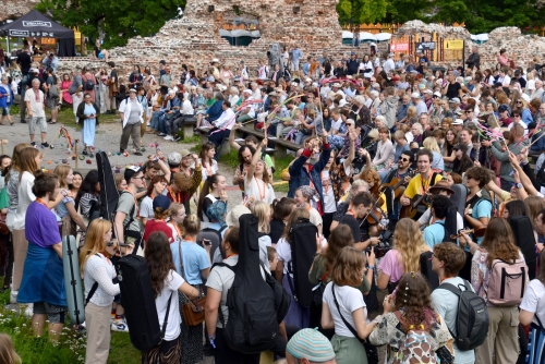 ⌚ 16.13 | 10. toimumisaastat tähistav Ruhnu viiulilaager tuli esimest korda saarelt mandrile, et anda uhke kontsert koos aastate jooksul laagris külas käinud välisartistidega. Üheskoos kanti ette kadunud ruhnurootsi traditsioonilist viiulimuusikat ja koraale, mille sekka kuulis viiuldajate lemmikuks saanud meretaguseid lugusid koos külalisesinejatega.