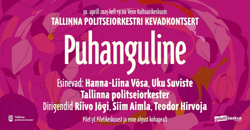 Tallinna Politseiorkestri kevadkontsert “Puhanguline” ootab muusikanautlejaid 30. aprillil kell 19 Vene Kultuurikeskuses. Solistidena astuvad lavale Hanna-Liina Võsa ja Uku Suviste.